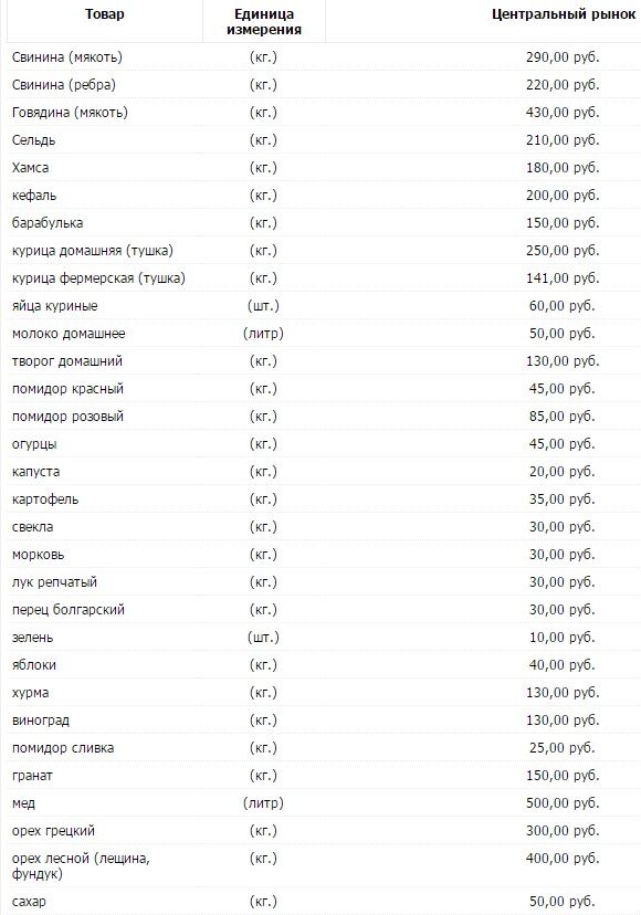 Что касается рыбы, то цена килограмма сельди составляет 210 рублей (86 гривен), а килограмм кефали можно приобрести за 200 рублей (82 гривен).