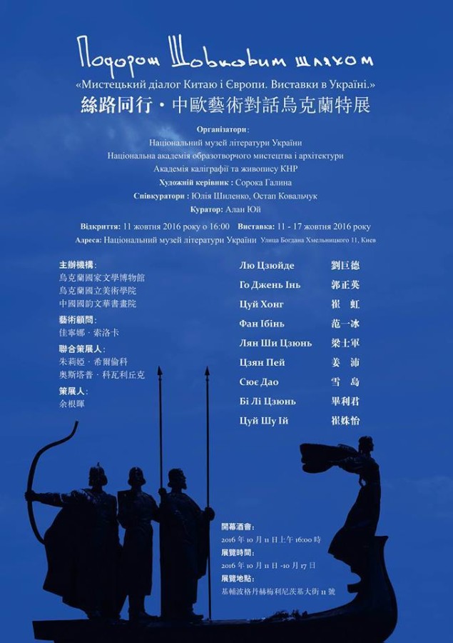 А Украина – это страна, где осуществляется диалог между Европой и Азией. Лучшие китайские художники, представляющие все провинции Китая, на этой неделе посетили Киев: Лю Цзюйде, Го Чжэнь Инь, Цуй Хонг, Фан Ибинь, Лян Ши Цзюнь, Цзян Пэй, Сюэ Дао, Би Ли Цзюнь, Цуй Шу Ий.