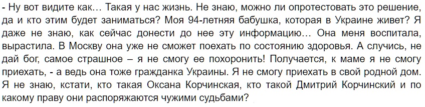 Певицу, которая родилась и выросла в Киеве, эта новость очень огорчила — так как теперь она не сможет увидеться со своими близкими, в частности, с 94-летней бабушкой Софией, которая находится уже в преклонном возрасте и вряд ли сможет полететь в РФ, чтобы повидаться с внучкой.