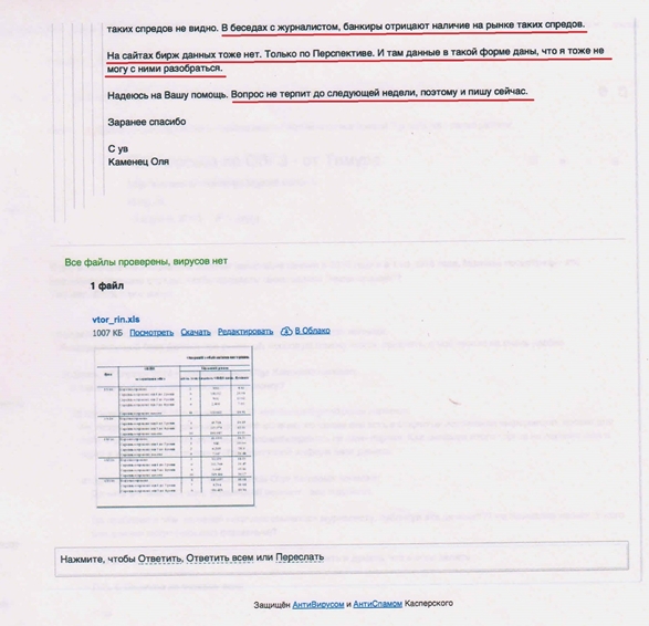 Судя по следующему письму, журналисту были пересланы те самые конфиденциальные таблицы, о которых пишет господин Барамия.