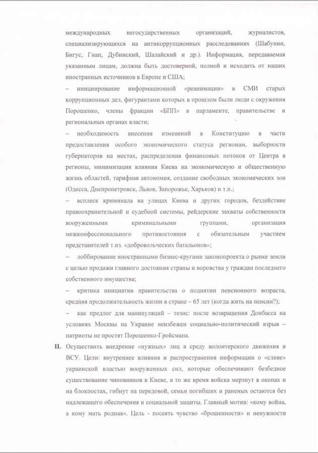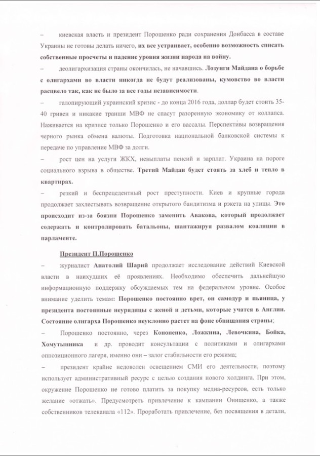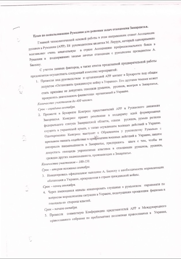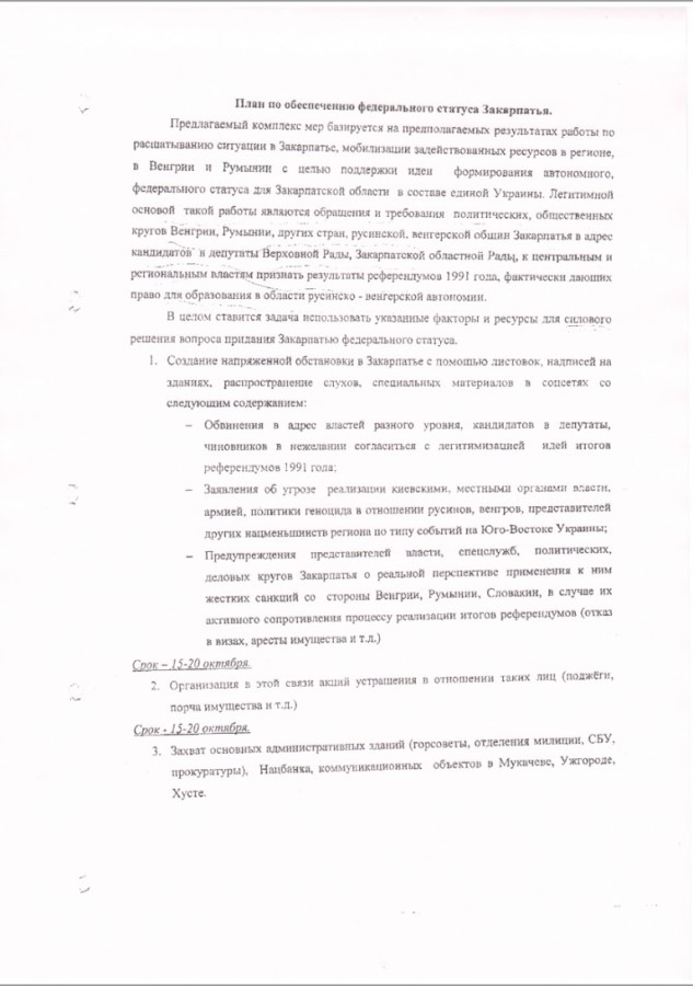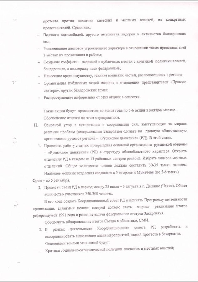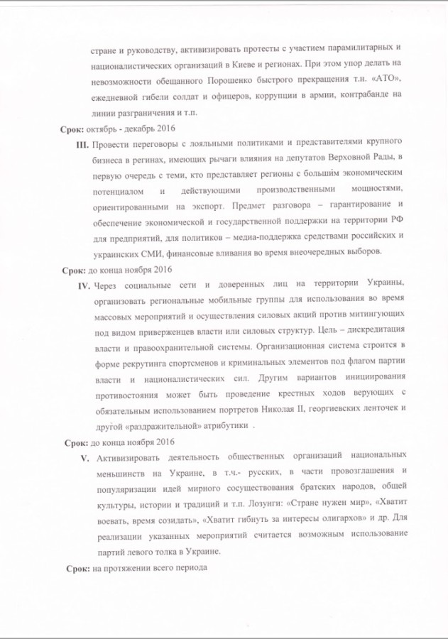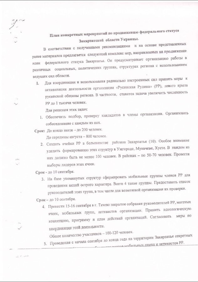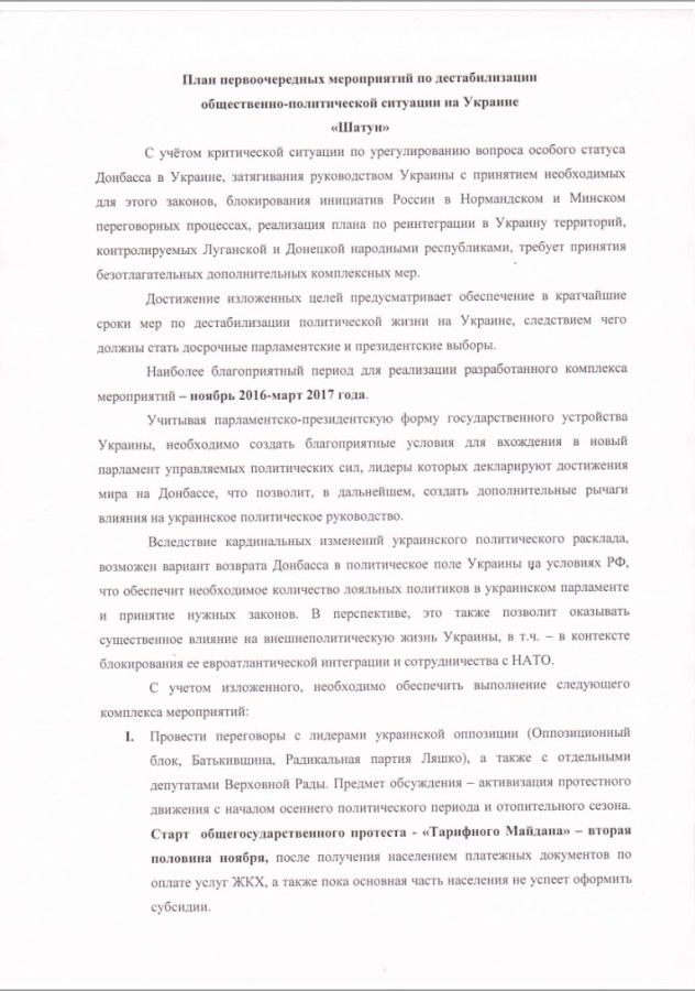 Организация выложила на сайте копии документов, в которых, в частности, излагаются "безотлагательные комплексные меры" по дестабилизации политической жизни в Украине, следствием чего должны стать досрочные парламентские и президентские выборы.