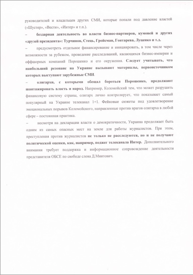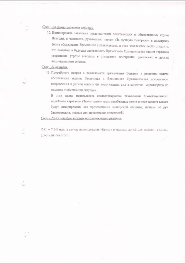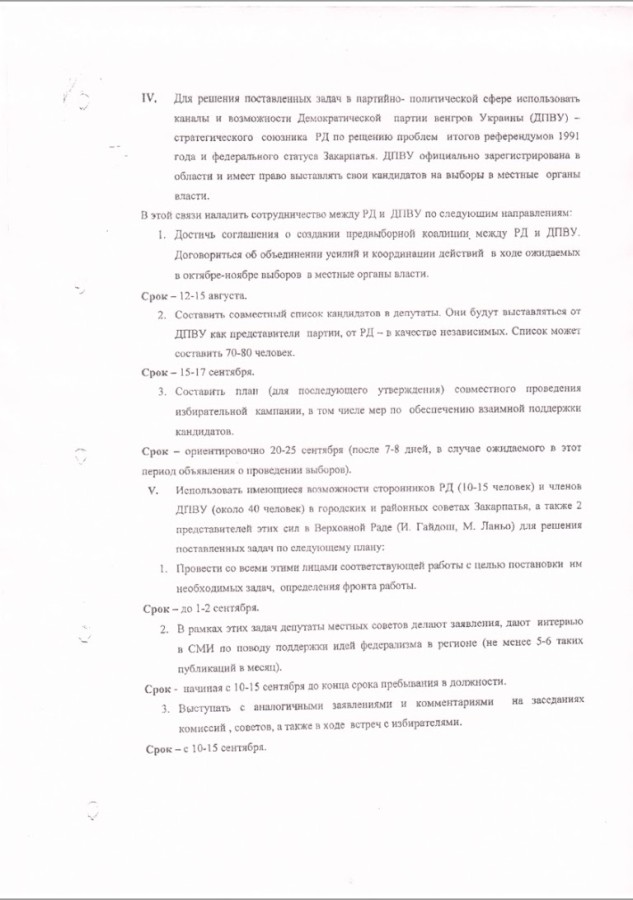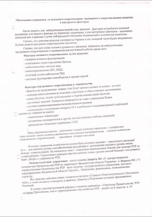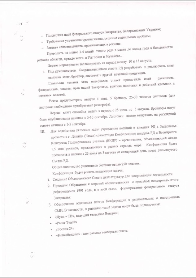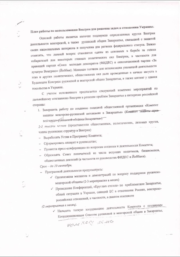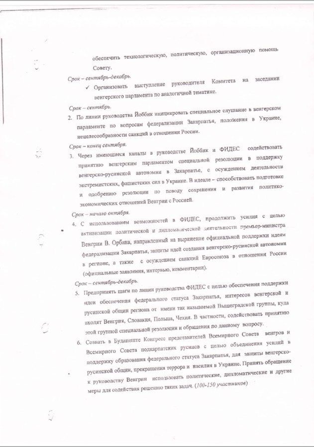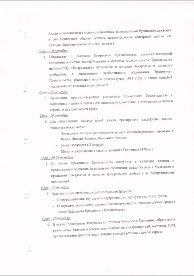 Организация выложила на сайте копии документов, в которых, в частности, излагаются "безотлагательные комплексные меры" по дестабилизации политической жизни в Украине, следствием чего должны стать досрочные парламентские и президентские выборы.