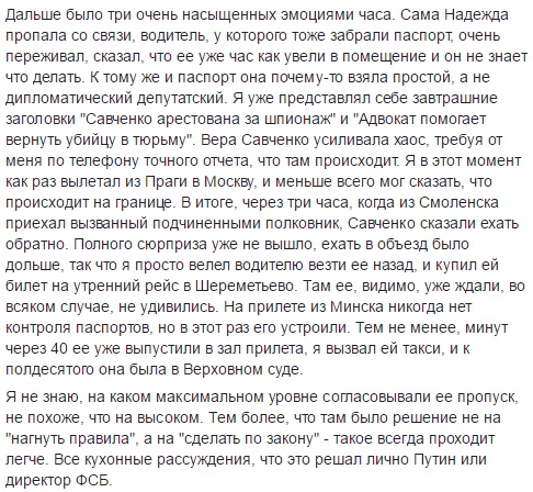 Новиков указал на ряд деталей, которые говорят о том, что визита Савченко в России не ждали.