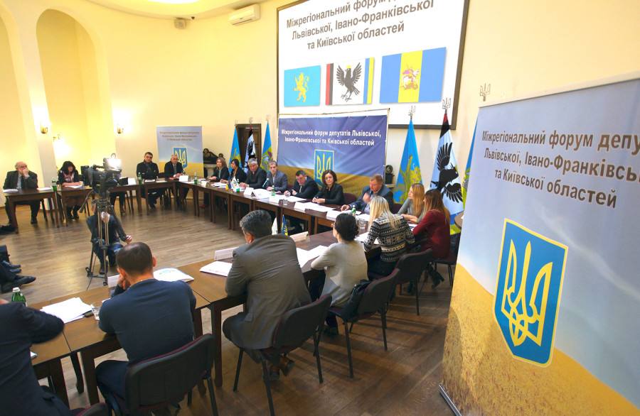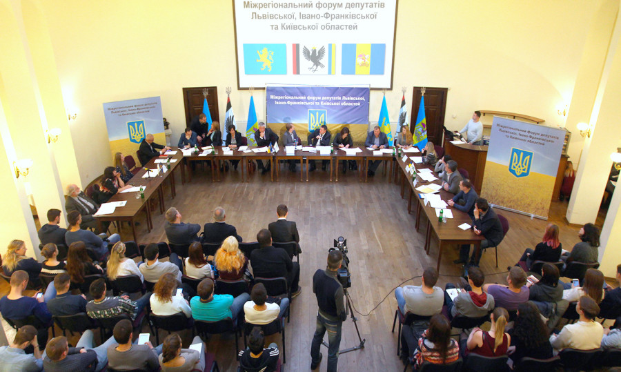 Во Львове состоялся межрегиональный форум депутатов Львовского, Ивано-Франковского и Киевского областных советов. В ходе мероприятия был представлен проект договора о разграничении полномочий регионов с центральной властью. Договор предусматривает перераспределение налоговых сборов в пользу региона, а также передачу на уровень региона вопросов социально-экономической и культурной политики, вопросов управления природными ресурсами. По словам участников форума, базовая часть проекта учитывает общие потребности всех регионов, а специальная часть - специфику каждого региона. Депутаты отмечают, что четкое разделение полномочий позволит решить острую для трех регионов экологическую проблему, возникшую из-за отсутствия финансовых ресурсов на строительство мусороперерабатывающих заводов. После окончательной проработки проектов договоров, депутаты предложат центральным властям их подписать.