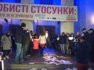 Учитывая то, что фанатам певицы помешали пройти в здание театра через главные двери, организаторы открыли для них служебный вход. Однако активистам это не понравилось, что привело к столкновениям с правоохранителями. Буквально через несколько минут появилось сообщение, что театр якобы заминирован. Людей эвакуировали, а здание проверили соответствующие службы.