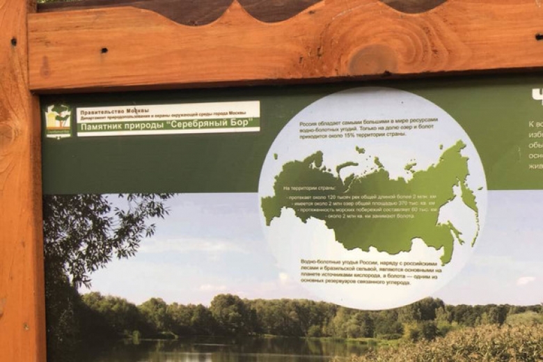 На стенде возле памятника природы "Серебряный Бор", что на северо-западе Москвы, изобразили карту России без украинского полуострова Крым.