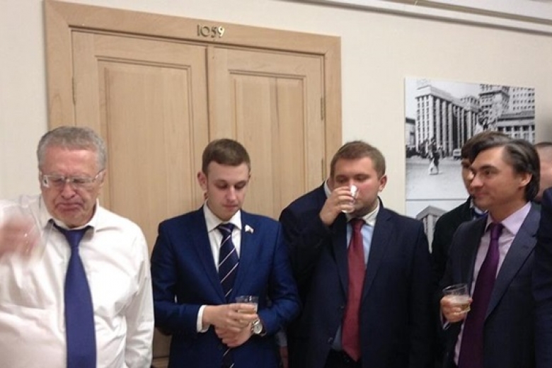 Лидер ЛДПР Владимир Жириновский устроил в Госдуме РФ банкет по случаю победы Дональда Трампа на выборах США.