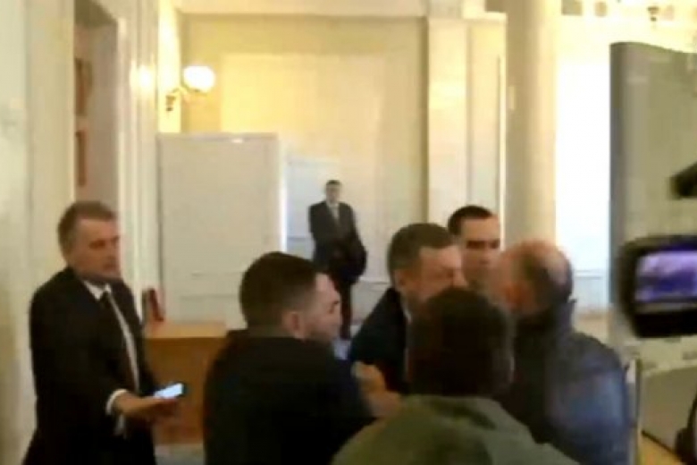 В сети опубликовано видео потасовки между депутами-радикалами и охранником Медведчука. Инцидент произошёл сегодня в Верховной Раде.