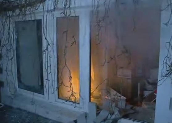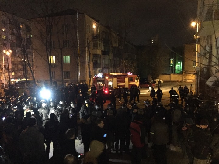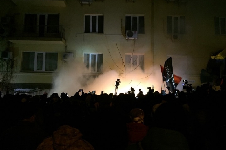 Из-за брошенных в окна дымовых шашек начался пожар, который потушили оперативно прибывшие спасатели. Сами активисты тоже пытались потушить огонь до приезда пожарных, после чего отправились обратно на Майдан.