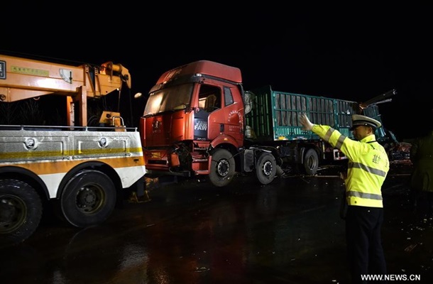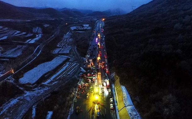 Авария произошла на трассе, связывающей Пекин и Куньмин. Причиной массовой аварии, по предварительным данным, стал мокрый снег.