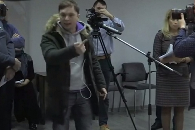 Позднее мужчина заявил, что его ударили. По словам скандалиста, он является сотрудником интернет-издания "Актуальная правда". В подтверждение своих слов мужчина продемонстрировал удостоверение, выданное на имя Сергея Медяника.
