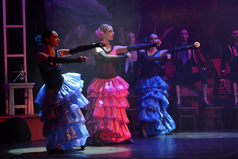 Зритель побывает на корриде, посетит знаменитую таверну Лилас-Пастья, услышит игру на кастаньетах, увидит оригинальную хореографию, богатую сложными поддержками, приемами эквилибристики и элементами непревзойденной техники выстукивания ритма носком, пяткой и стопой – сапатеадо, использованной в испанском танце фламенко.