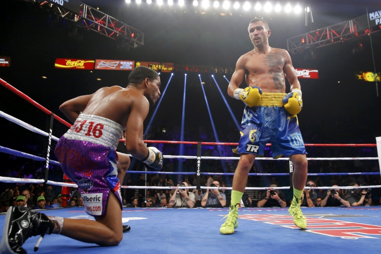 В Лас-Вегасе чемпион мира по версии WBO во втором полулегком весе (до 59 кг) украинец Василий Ломаченко (7-1, 5 КО) уверенно отстоял принадлежащий ему титул, нанеся первое поражение ямайцу Николасу Уолтерсу (26-1-1, 21 КО). Об этом сообщает издание vRINGe.com.