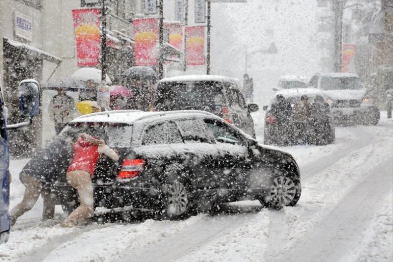 В столицу нагрянула зима. Утром в считанные минуты на город обрушился мощный снегопад. Из-на почти нулевой видимости и снежной каши на асфальте на ключевых транспортных артериях Киева произошли ДТП. На многие километры растянулись дорожные заторы. Сервис "Яндекс пробки" показывал - 7 и даже 8 баллов. Скорость движения по многим ключевым дорогам столицы не превышал пяти км/час. Правда, после обеда стало немного лучше.