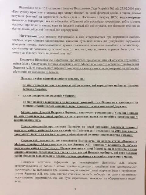 "Заявляю, что не имею и никогда не имел в собственности ни движимого, ни недвижимого имущества за пределами государства Украина; не имею иностранных счетов в банках; не имею никакого отношения к иностранным компаниям, тем более не являюсь владельцем или конечным бенефициаром компаний, зарегистрированных за пределами нашего государства", - написал Яценюк.