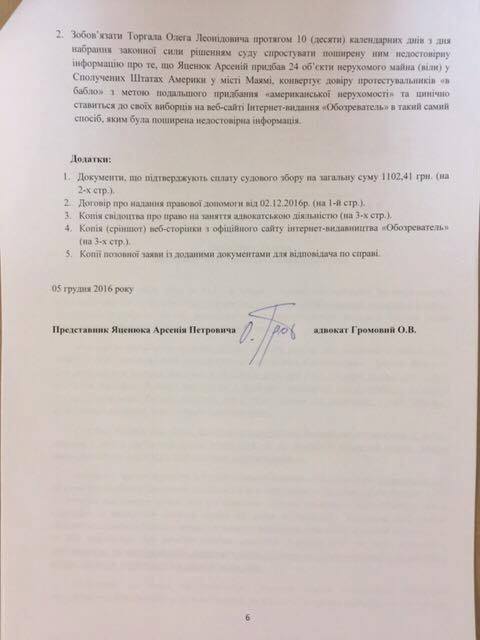 В связи с этим он решил в судебном порядке доказать ложность распространенной блогером информации о наличии вилл в США и подал исковое заявление на Торгало в Соломенский районный суд Киева.