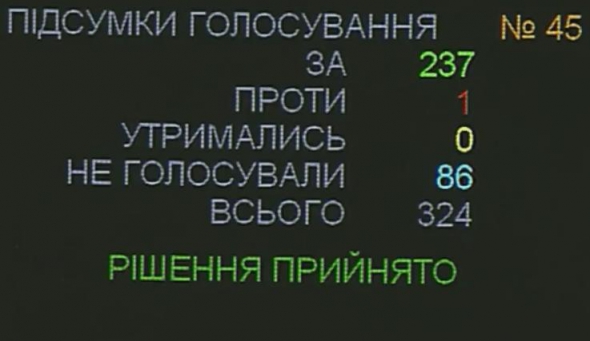 Соответствующее решение поддержали 237 народных депутатов при минимально необходимых 226-ти.