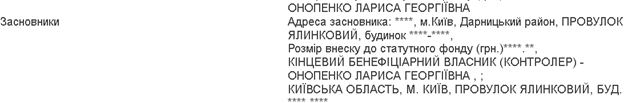 Ось тут видно, що Онопенко Лариса Георгієвна є основним співвласником цієї компанії.
