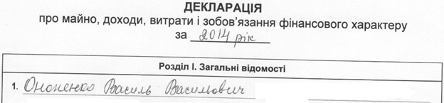 Натомість, у декларації Онопенка Василя Васильовича про жодні відсотки, тобто про цінні папери його дружини ніяких згадок не має.