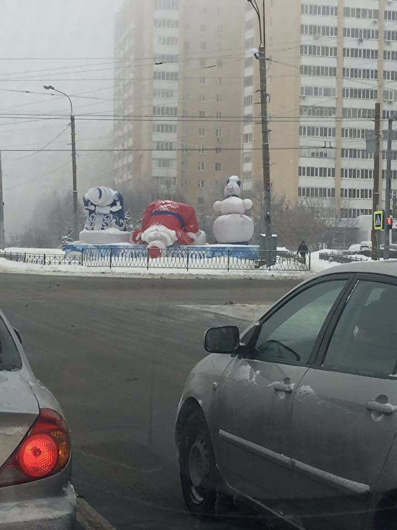 Надувные новогодние персонажи "сдулись", чем привлекли к себе всеобщее внимание.