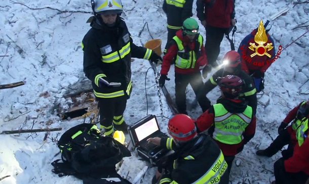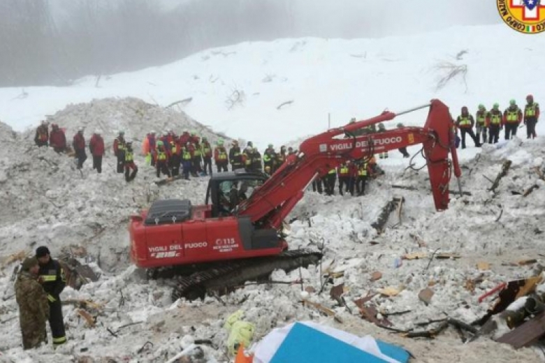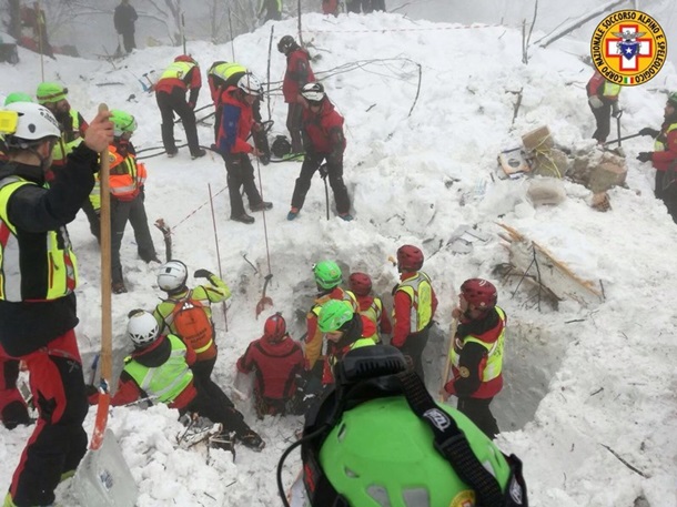 Напомним, 18 января в Италии снежная лавина полностью накрыла отель Rigopiano. Лавина была, вероятно, спровоцирована сильными землетрясениями. Из-за сложных метеоусловий спасатели в течение нескольких часов пытались добраться до отеля. По данным менеджмента отеля, во время трагедии в здании находились 35 человек - туристы и персонал.