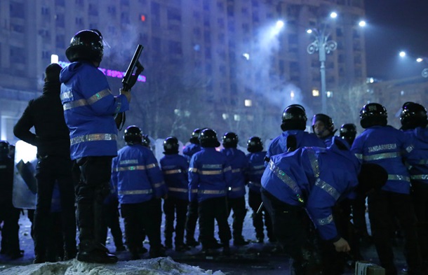 Перед зданием правительства Румынии в Бухаресте в правоохранителей бросали петарды и дымовые шашки, полиция в ответ применила слезоточивый газ. Четыре человека пострадали.