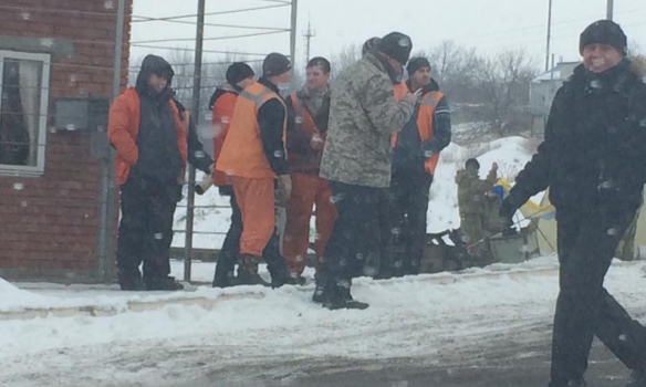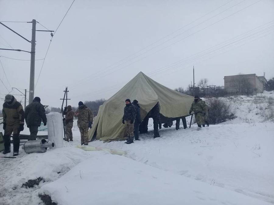 Люди в камуфлированной форме уже установили здесь палатки, возводят своеобразные тепловые укрытия из снега, набирают снег в мешки и ограждают палатку для того, чтобы там греться. Грозятся здесь ночевать.