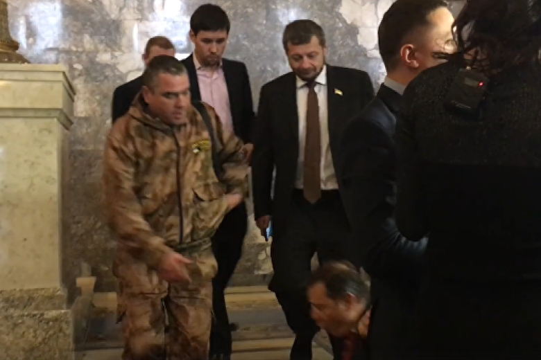 Видео того, как падает нардеп, опубликовал на своей странице странице в Facebook журналист Василий Крутчак.