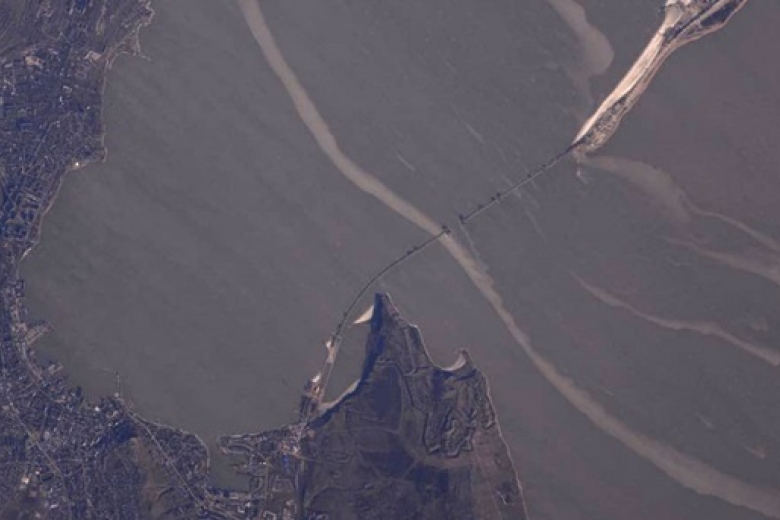 Командир космического корабля Союз МС-03 Олег Новицкий, который находится на МКС, сфотографировал из космоса строительство моста из Крыма в Россию.