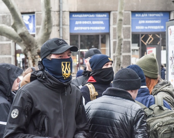 Активисты гражданского корпуса "Азов" провели 25 февраля акцию протеста в Одессе у здания Проминвестбанка на улице Пушкинской, передает Одесса-Медиа.
