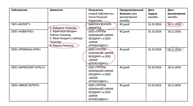 Чиновники рассматривали жалобы довольно поспешно: в течение всего 16 дней (а не 45 дней, как предусмотрено) Комиссия при Минюсте без предупреждения лишает тринадцать владельцев фирм корпоративных прав и имущества в интересах агрохолдинга "Мрия"...