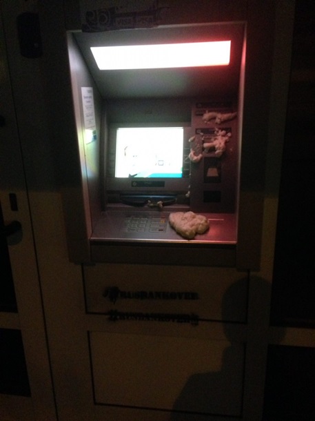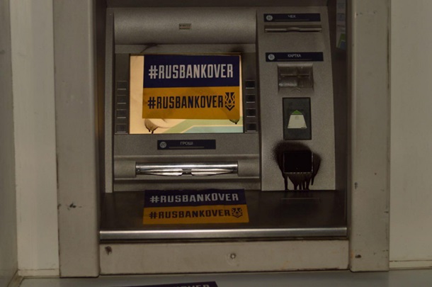На двери и витражи банков, а также на экраны банкоматов были прикреплены наклейки с тэгом #RUSBANKOVER. Кроме того, отверстия банкоматов залили монтажной пеной.
