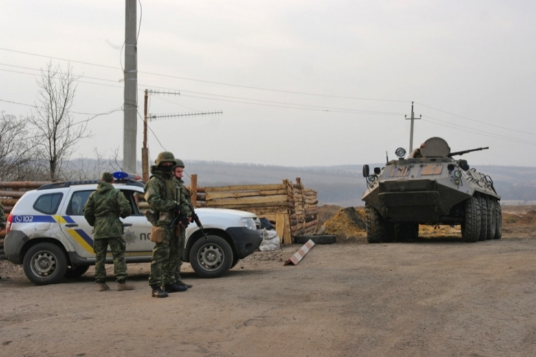Сообщается, что на стационарных и мобильных блокпостах на территории Донецкой и Луганской областей несут службу более 800 правоохранителей.