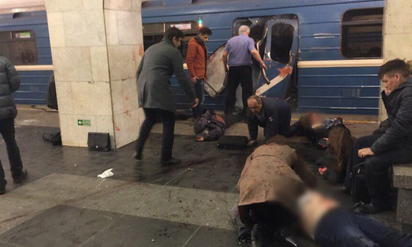 В то же время сообщают, что взрывы прогремели и станции Технологический институт, и на станции Сенная площадь. По меньшей мере пять человек погибли и более 50 пострадали при взрыве в вагоне метро на станции Технологический институт.