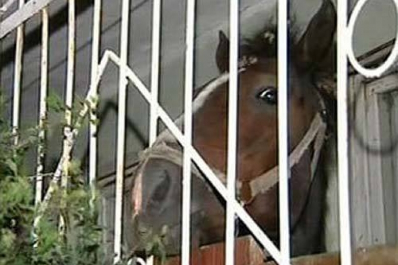 Между тем, соседи пожаловались в милицию на ржание коня и специфический запах навоза, сообщается в телесюжете.