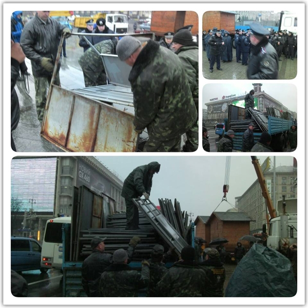 На Майдане начали монтировать новогодний городок. Как будто по заказу Чечетова, который заявил, что скоро Новый год, и на главной площади пора ставить елку. Между тем на Майдан подогнали автобус с правоохранители.